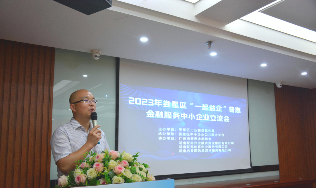 為深入貫徹落實(shí)工信部“一起益企”中小企業(yè)服務(wù)行動(dòng),進(jìn)一步加強(qiáng)中小微企業(yè)金融基礎(chǔ)知識(shí)的了解,提升對(duì)金融產(chǎn)品和服務(wù)的認(rèn)知能力,著力促進(jìn)制造業(yè)和中小微企業(yè)融資,助力企業(yè)高質(zhì)量發(fā)展,4月21日,由婁星區(qū)工業(yè)和信息化局主辦,婁星區(qū)中小企業(yè)公共服務(wù)平臺(tái)承辦,廣州市普惠金融協(xié)會(huì)、湖南聯(lián)邦興業(yè)融資擔(dān)保集團(tuán)有限公司等服務(wù)機(jī)構(gòu)協(xié)辦的2023年婁星區(qū)“一起益企”普惠金融服務(wù)中小企業(yè)交流會(huì)在吉星金融大廈六樓舉行。