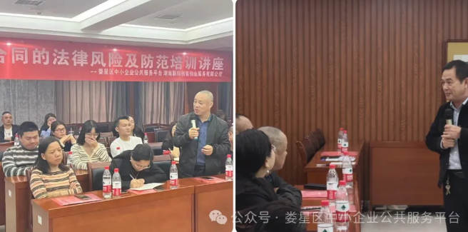 11月15日,由婁星區(qū)工業(yè)和信息化局主辦,婁星區(qū)中小企業(yè)公共服務(wù)平臺承辦,湖南泰漣律師事務(wù)所協(xié)辦的2024年“服務(wù)實體經(jīng)濟(jì) 律企攜手同行”《企業(yè)合同的法律風(fēng)險及防范》培訓(xùn)講座在婁星區(qū)平臺多功能會議室舉行,全區(qū)各企業(yè)家代表共40余人參加。