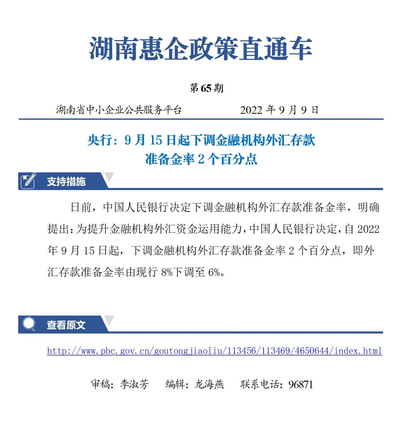 央行:9月15日起下調(diào)金融機構(gòu)外匯存款準備金率2個百分點