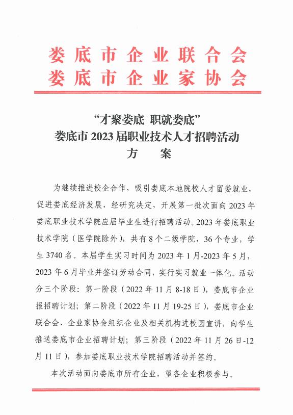 “才聚婁底 職就婁底”婁底市2023屆職業(yè)技術人才招聘活動方案