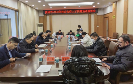 為貫徹落實(shí)湖南省“三高四新”發(fā)展戰(zhàn)略,全面推動(dòng)婁底中部地區(qū)“材料谷”建設(shè),助力婁底中小企業(yè)紓困增效,助力人才集聚,促進(jìn)經(jīng)濟(jì)發(fā)展。2023年2月13日下午,“婁底市 2023 年校企合作人才供需活動(dòng)座談會(huì)”在婁底市企業(yè)聯(lián)合會(huì)、企業(yè)家協(xié)會(huì)召開。婁底市人民政府原副市長、市企業(yè)聯(lián)合會(huì)、企業(yè)家協(xié)會(huì)會(huì)長余明庭出席并講話,市工信局二級(jí)調(diào)研員潘曉燕、市人才發(fā)展服務(wù)中心主任劉偦、湖南人文科技學(xué)院、婁底職業(yè)技術(shù)學(xué)院、婁底瀟湘職業(yè)學(xué)院等院校招生就業(yè)處負(fù)責(zé)人以及各縣市區(qū)企業(yè)家協(xié)會(huì)負(fù)責(zé)人參加此次座談會(huì)。